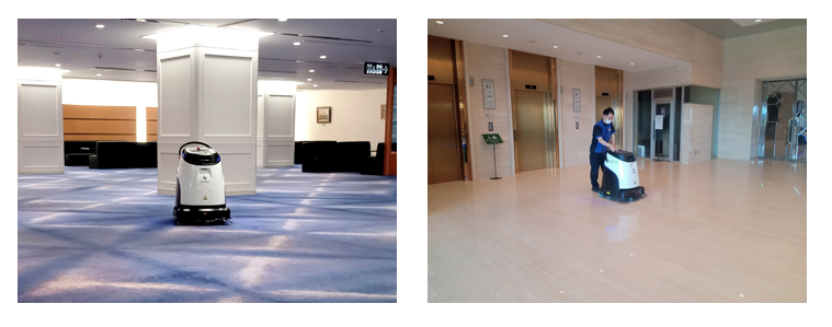 オフィスビルやホテル、病院等広い屋内で活躍する業務用清掃ロボット。