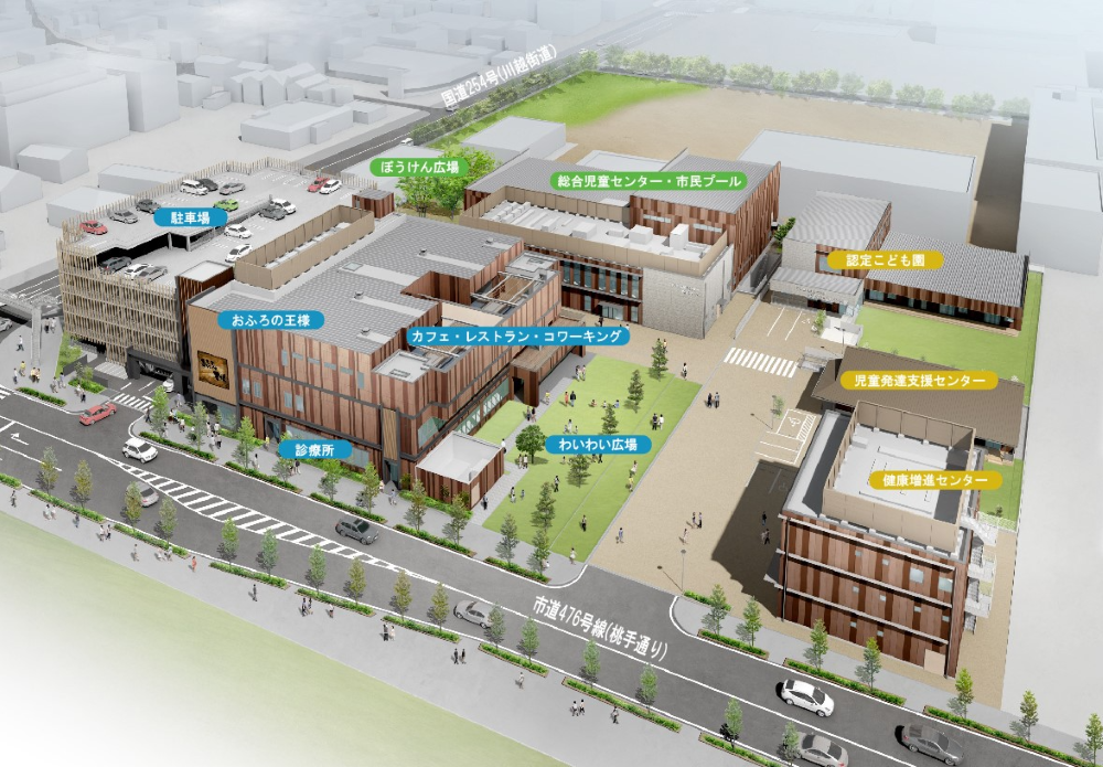 本施設は、総合児童センター、市民プール、おふろの王様和光店、「わぴあルーム」、すこやかわこう おやこサポートクリニックからなる北エリア、和光市健康増進センター、和光なかよしこども園、和光市児童発達支援センターやまぼうしからなる南エリアで構成されています。