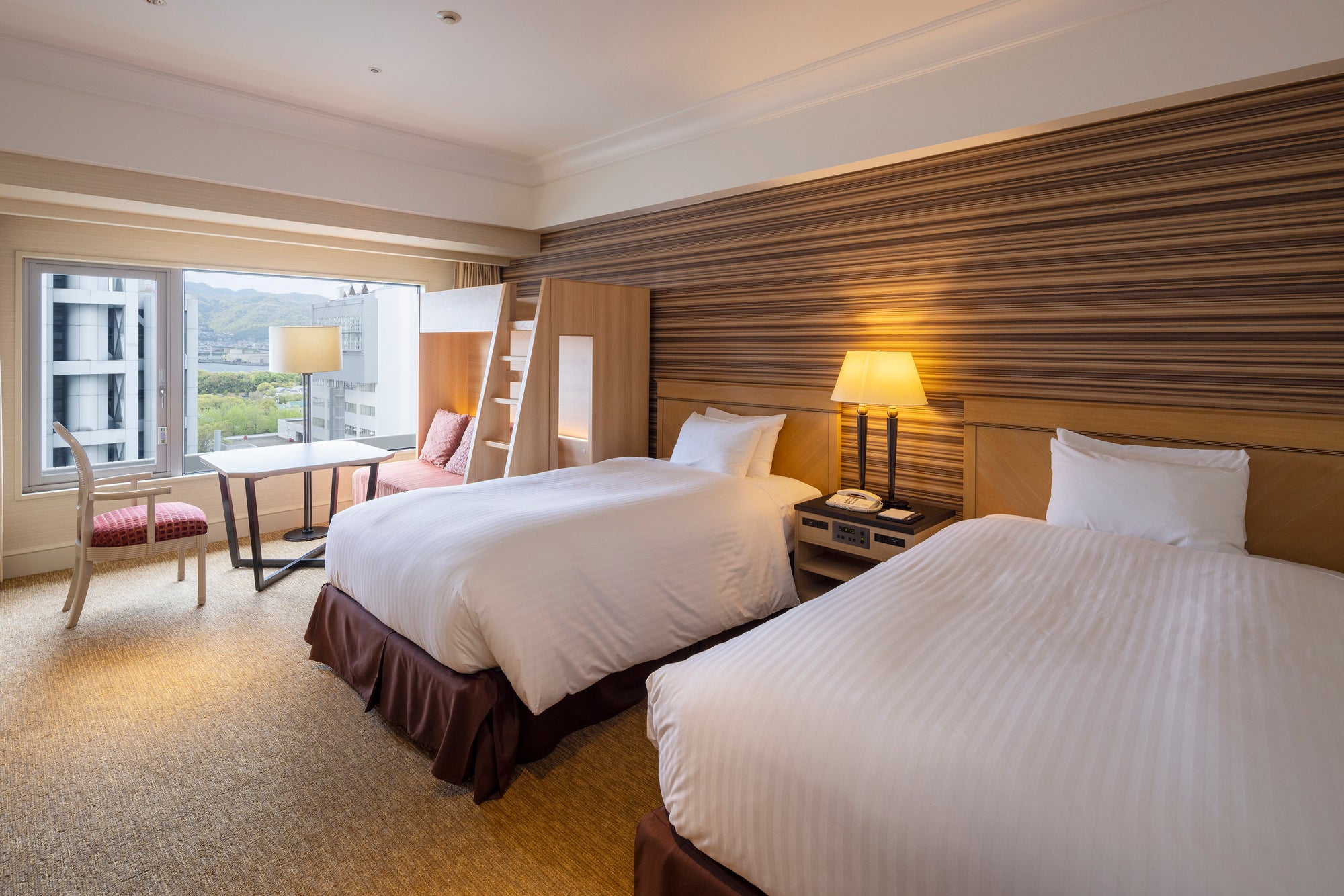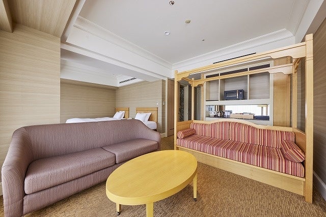 小さなお子様連れでも安心してお寛ぎいただけるように室内で靴を脱いでくつろぐ仕様にフロア全体をリニューアル。「バンクベット(2段ベッド)」のあるお部屋は隣同士のお部屋で行き来が出来る「コネクト対応」が可能です。エレベータホールには電子レンジを設置。赤ちゃん用シャンプー・子供用便座などのレンタルも可能でより快適な滞在をサポートいたします。 ※キッズウエルカムスイーツもプレゼント