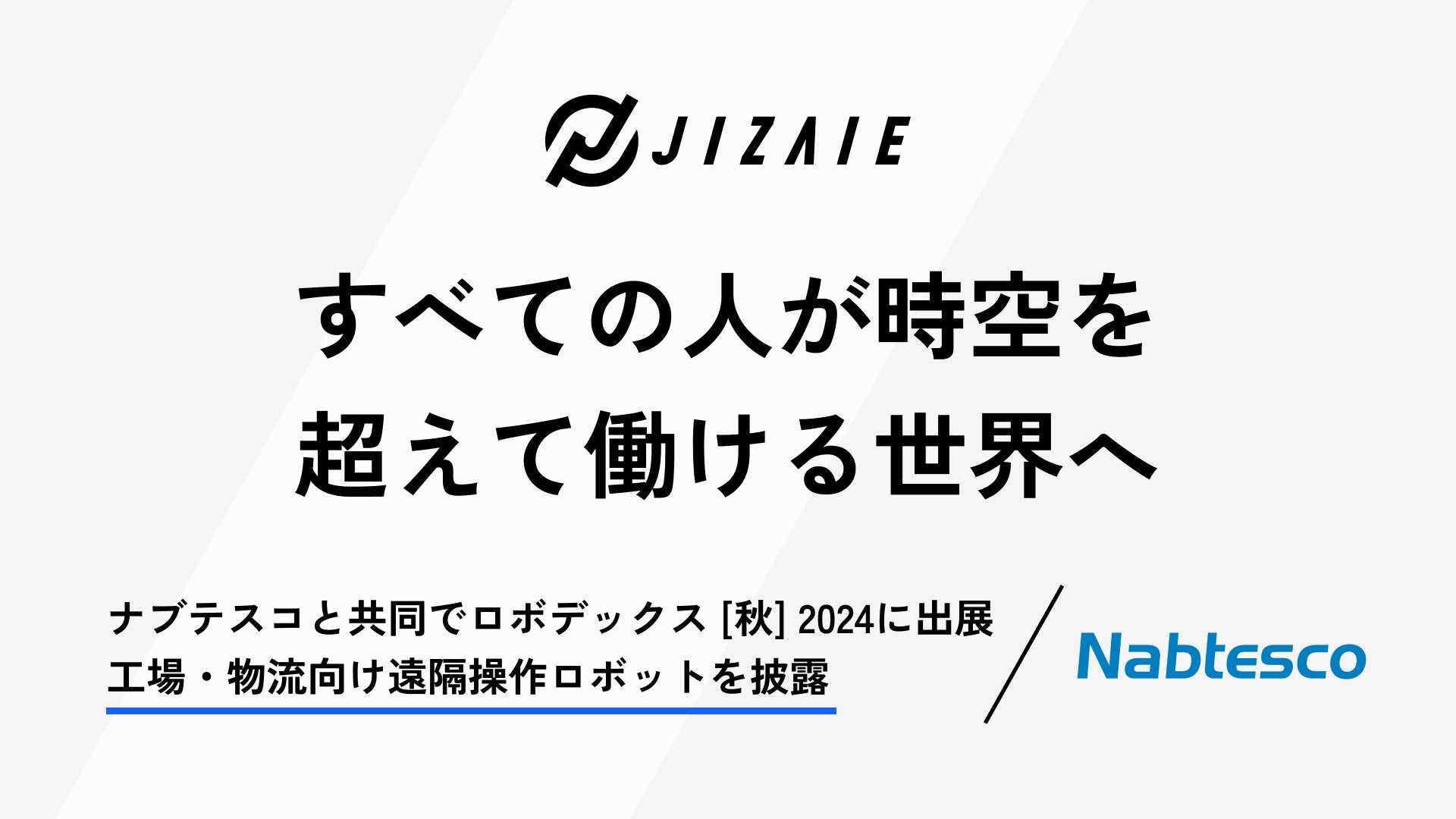 株式会社ジザイエ(本社:東京都千代田区、代表取締役CEO:中川 純希、以下「ジザイエ」)は、2024年9月4日(水)〜9月6日(金)に幕張メッセで開催される「第3回 ロボデックス[秋] ロボット開発・活用展」に、ナブテスコ株式会社(本社:東京都千代田区、代表取締役社長:木村 和正、以下「ナブテスコ」)と共同出展いたします。