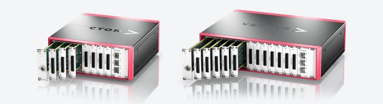 シンプルなハードウェアはもちろん、多数のI/Oを備えた複合システムにも対応でき、幅広い機能テストが可能なテストシステムを構成できます。CANoe(キャヌー)とvTESTstudio(ヴイテストスタジオ)は、これと連携する自動化ソフトウェアです。