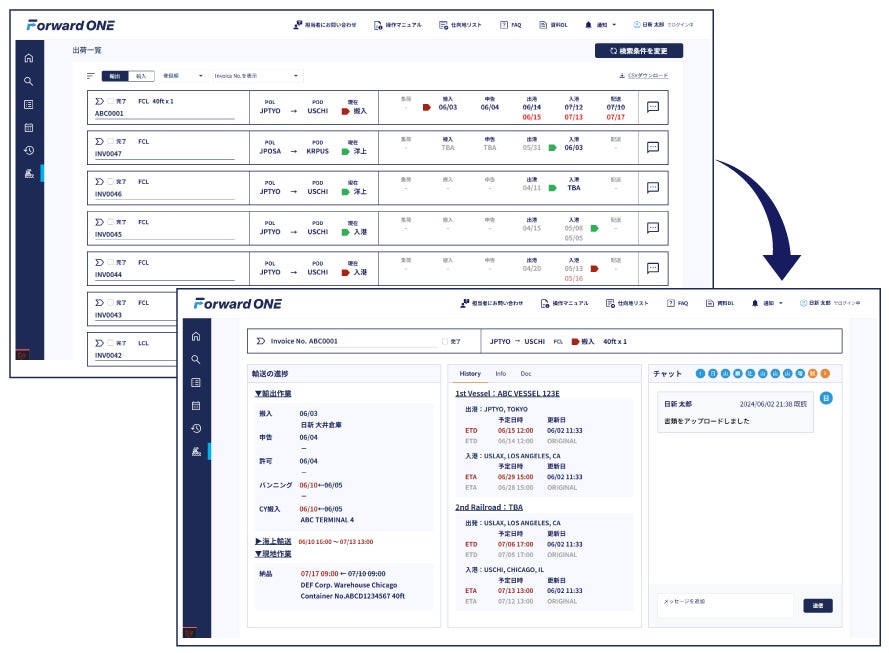 デジタルフォワーディングサービス「Forward ONE」新機能「作業進捗管理・本船動静トラッキング機能」をリリース