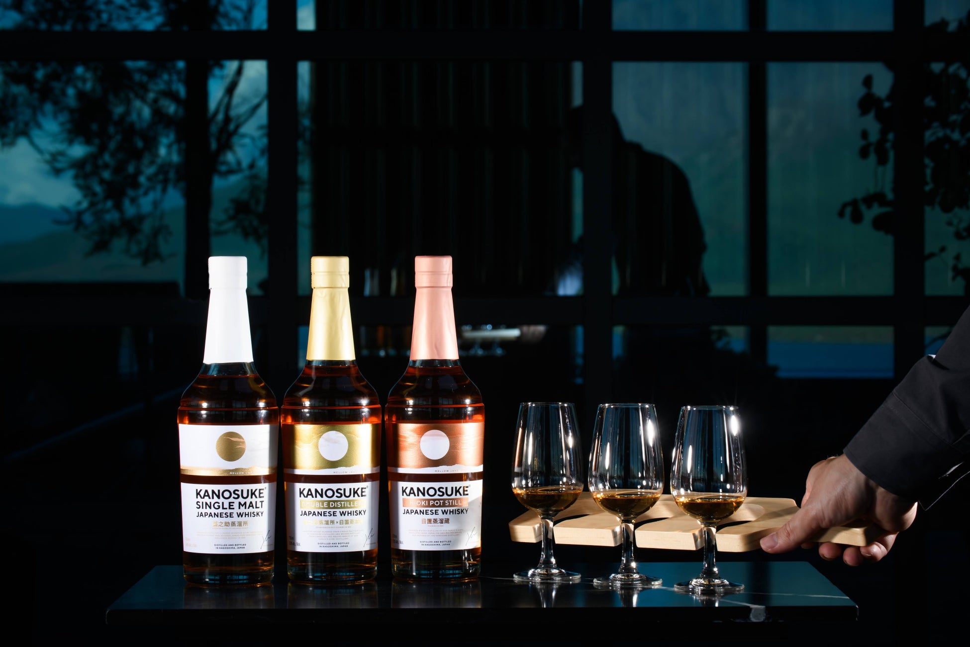 バー「VIVARIUM」では、1883年創業の、日置市の焼酎蔵「小正醸造」の焼酎造りで培った蒸溜と熟成の技術を活かしてウイスキー造りを行う「嘉之助蒸溜所」の3種のウイスキーの飲み比べセットを提供・ご堪能いただきます。