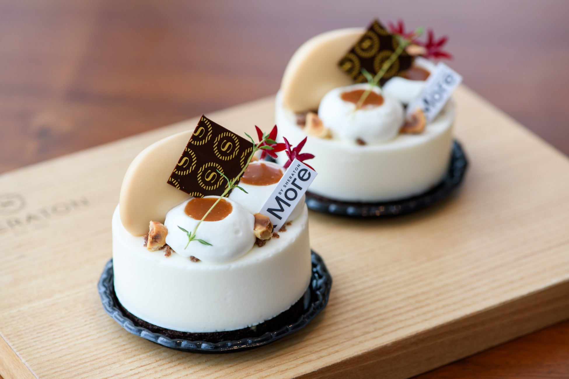 カフェ「&More by Sheraton」では、深まる秋を思わせるキャラメルの甘みに天然あま塩のしょっぱさがアクセントになった『天然あま塩とキャラメルのレアチーズ』や、自然豊かな地で育てられた『日置野菜のピザ』などを販売します。