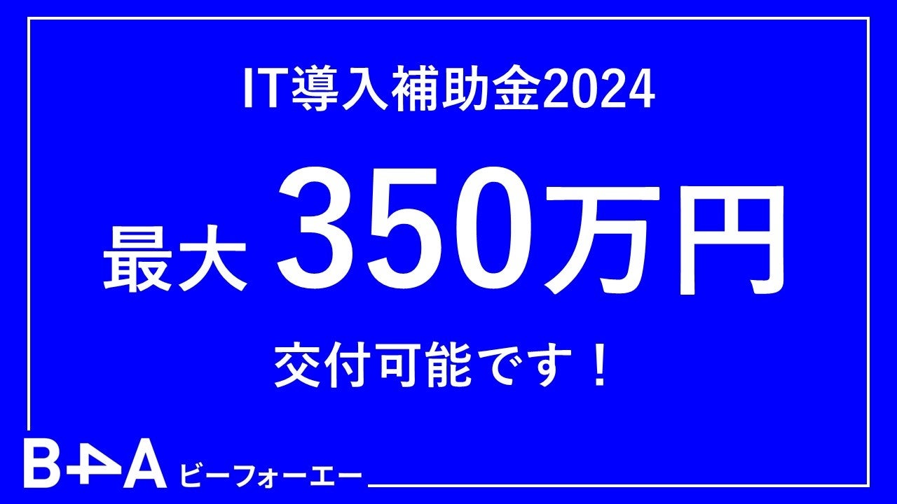 B4Aは以前より対象ツールとして認定されておりましたが、2024年より名称変更に伴い認定枠が「インボイス枠」へ変わりました。内容は昨年同様、最大350万円(導入費用の3分の2)まで補助金の交付が可能です。