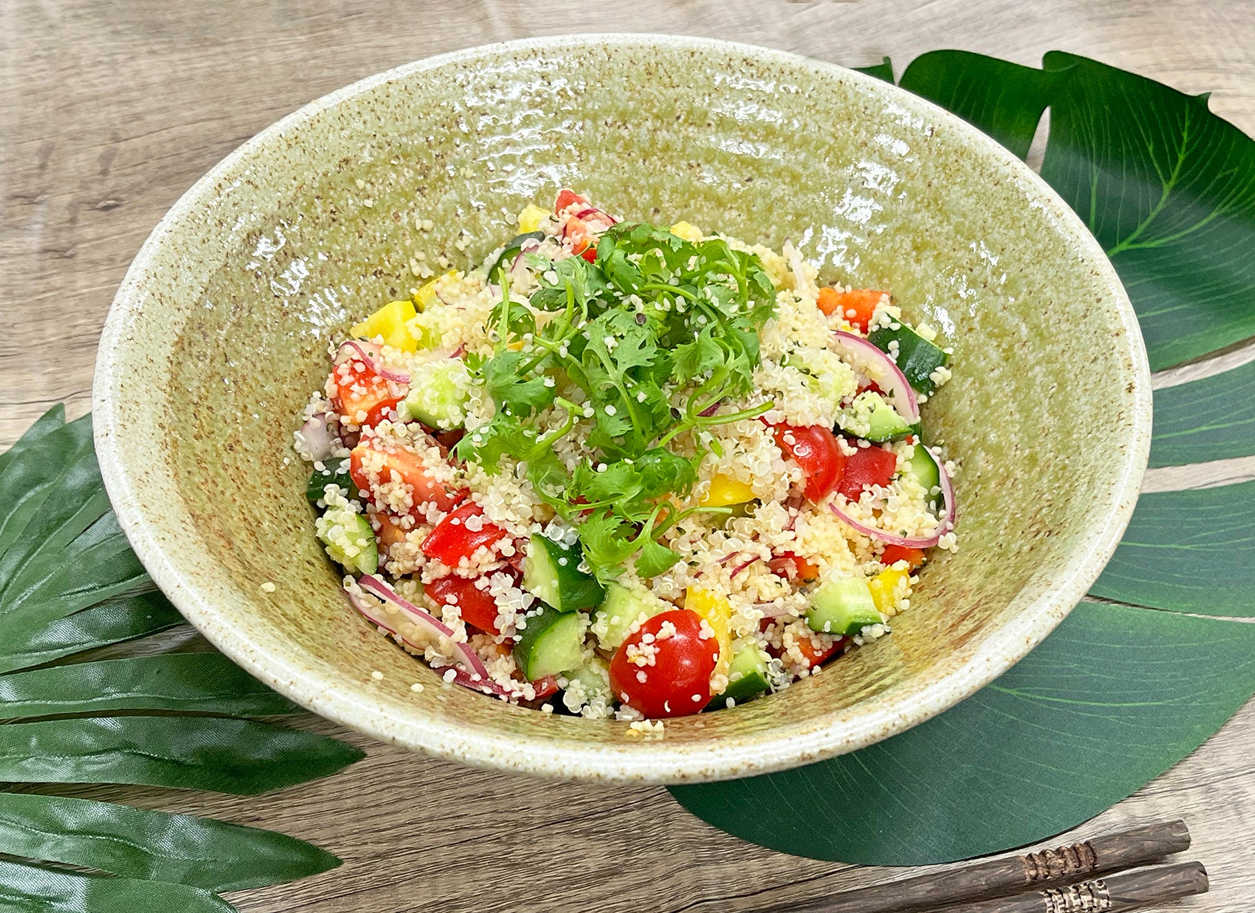 今回は社員の野菜摂取量向上を目的とした、特別野菜ランチを提供予定。5日間毎日テーマとメニューを変え、社内の調理師1名+管理栄養士2名でチームになり、ランチ提供を行います。8月8日(木)のランチテーマ「エスニック料理でアンチエイジング」では、スーパーフードであるキヌアやヘンプシードを使ったエスニックサラダが登場。必須脂肪酸やミネラル、食物繊維も豊富に含んだスーパーフードで、暑い季節を元気に乗り切ることができます。