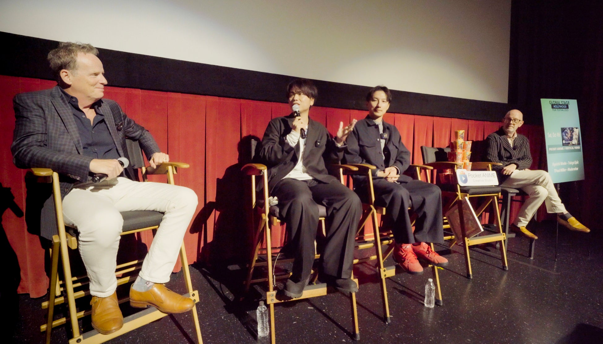 特別セッション「—Hollywood Witnesses the Next Revolution: AI × ANIME.—」では、元Warner Bros.副社長でありGLOBAL STAGE HOLLYWOODのエグゼクティブプロデューサーであるDouglas Montgomery氏、そしてハリウッドの複数のメジャースタジオでプロデューサーを務め、デジタル文化の先駆者として知られるTPaul Miller氏と共に、PocketANIMEが生み出す次世代型アニメ制作とその可能性について議論しました。