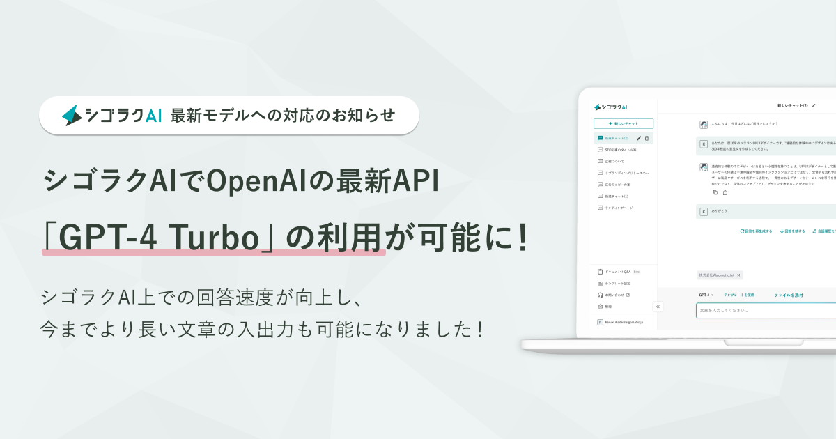 ChatGPTを安全かつ簡単に使える「シゴラクAI」がOpenAIの最新API「GPT-4 Turbo」に対応完了