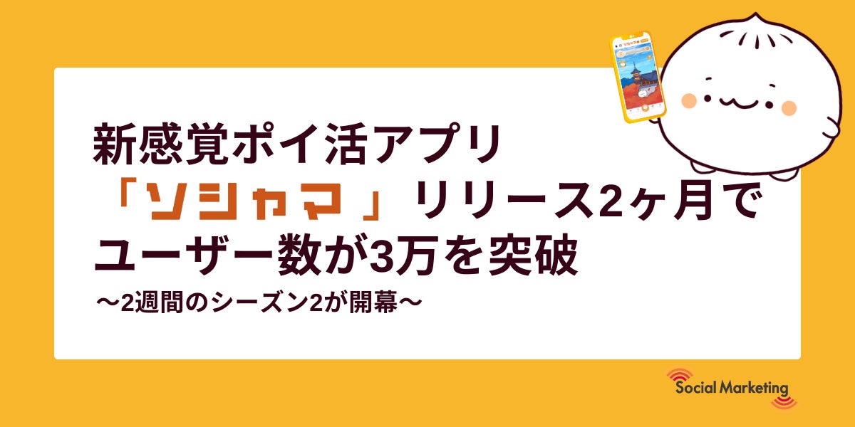 ソーシャルマーケティング株式会社(本社:東京都文京区、代表取締役:相原 和明、以下:当社)は、新感覚ポイ活アプリ「ソシャマ」のユーザー数が3万を突破したことをお知らせいたします。約3ヶ月間にわたるシーズン1が終了し、11月1日(金)より機能の大幅アップデートとともにシーズン2が開幕いたします。