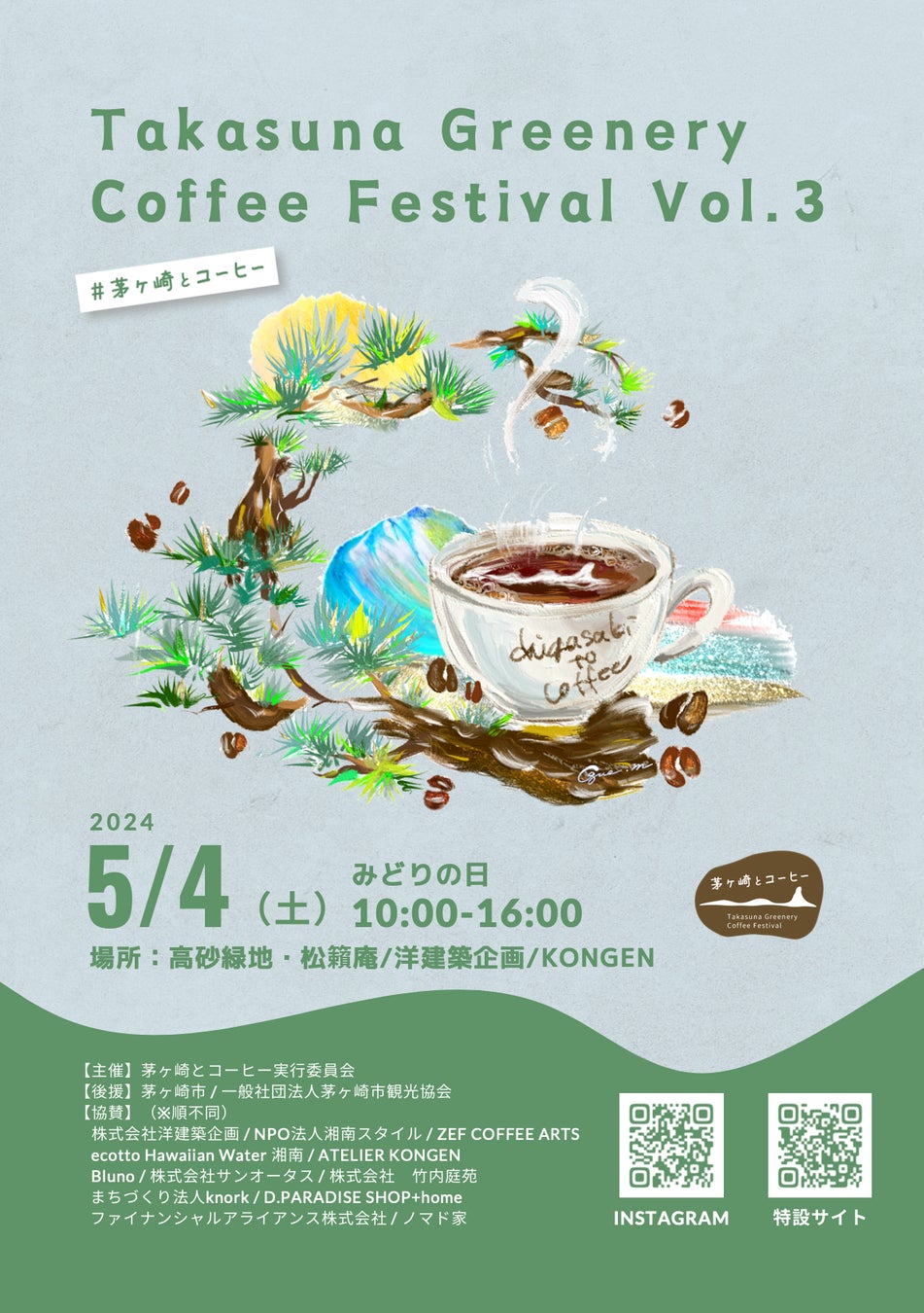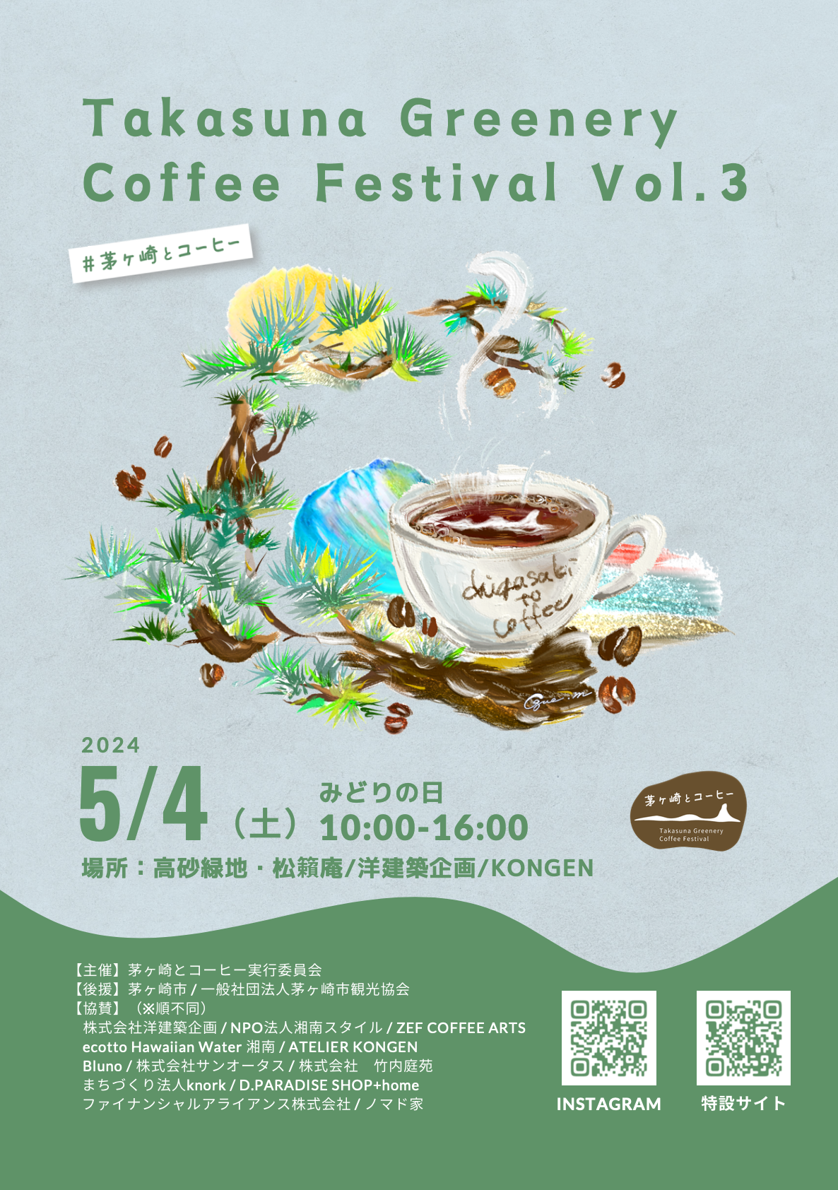 茅ヶ崎とコーヒー実行委員会は、まち歩きコーヒーフェス「Takasuna Greenery Coffee Festival vol.3」を2024年5月4日(土)に茅ヶ崎市で開催しました。