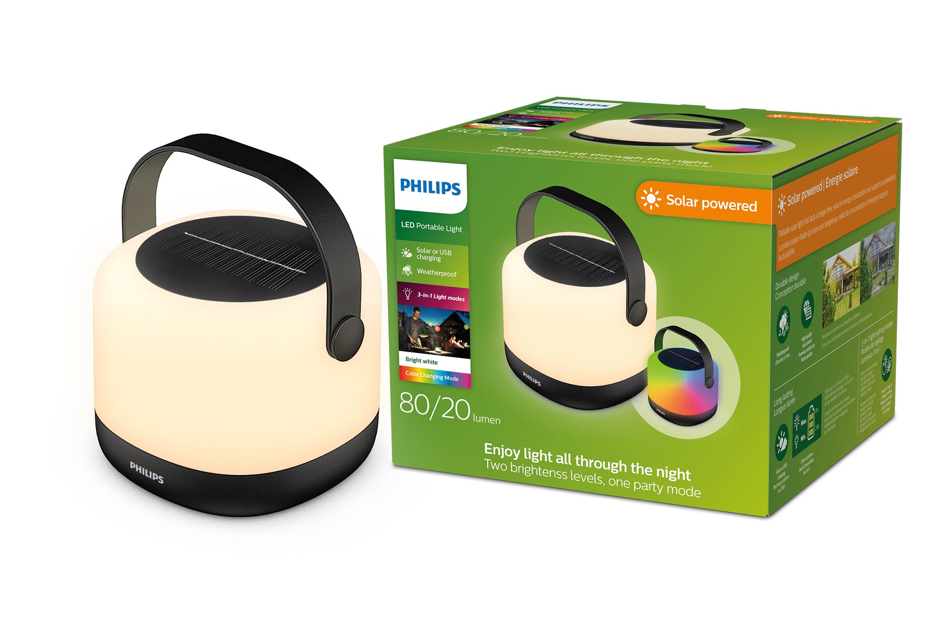 Alula(アルーラ)は、手に馴染むソフトハンドル付きで持ち歩きしやすく、ソーラー充電、防水防塵機能といった屋外での活動に重点を置いた、フィリップスLEDシリーズにて初となるソーラー充電フルカラーモデルです。