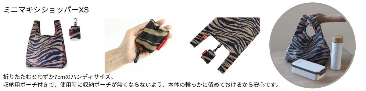 中でも、ライゼンタールのミニマキシシリーズは、2001年の発売以来、手にとってくださった方々に多くの感動を与えてきた大人気商品。バッグの中でも邪魔にならす、コンパクトに持ち運び、使いたい時にはたっぷりサイズで収納力抜群。サスティナブルの意識が高まってきた今、必ずバッグに入れておきたいマストアイテムです。そのミニマキシシリーズの中で、過去最少「 XS 」サイズとして、日本限定サイズで開発された、MINI MAXI SHOPPER XS(ミニマキシショッパーXS)は、マチは約20cmあり、幅広の底面でコンビニ弁当やスーパーのお惣菜パックが傾かず、ちょっとした買い物に最適。折り畳めばわずか7cmのハンディサイズになるので、常にバッグのポケットに携帯して、サブバッグとして使用するのにピッタリ。