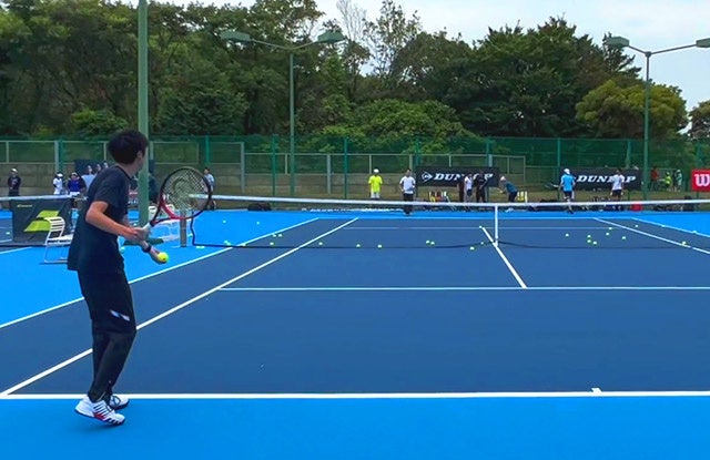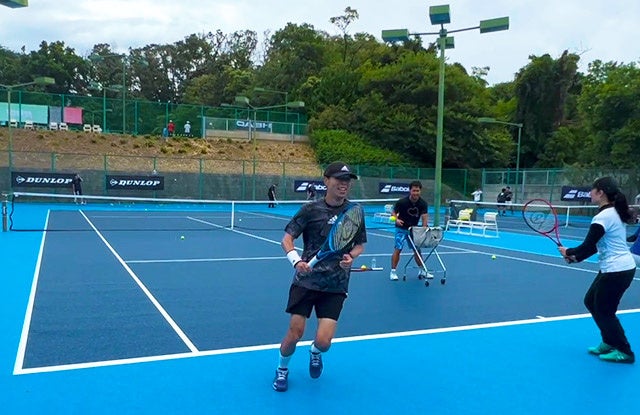 ダンロップのコートでは、「FXシリーズ」をはじめ、「SXシリーズ」「CXシリーズ」「LXシリーズ」のテニスラケットの試打と、K・SWISS(ケースイス)のテニスシューズ「Express Light 3」「Bigshot Light 4 Omni」シリーズの試履きが行えました。