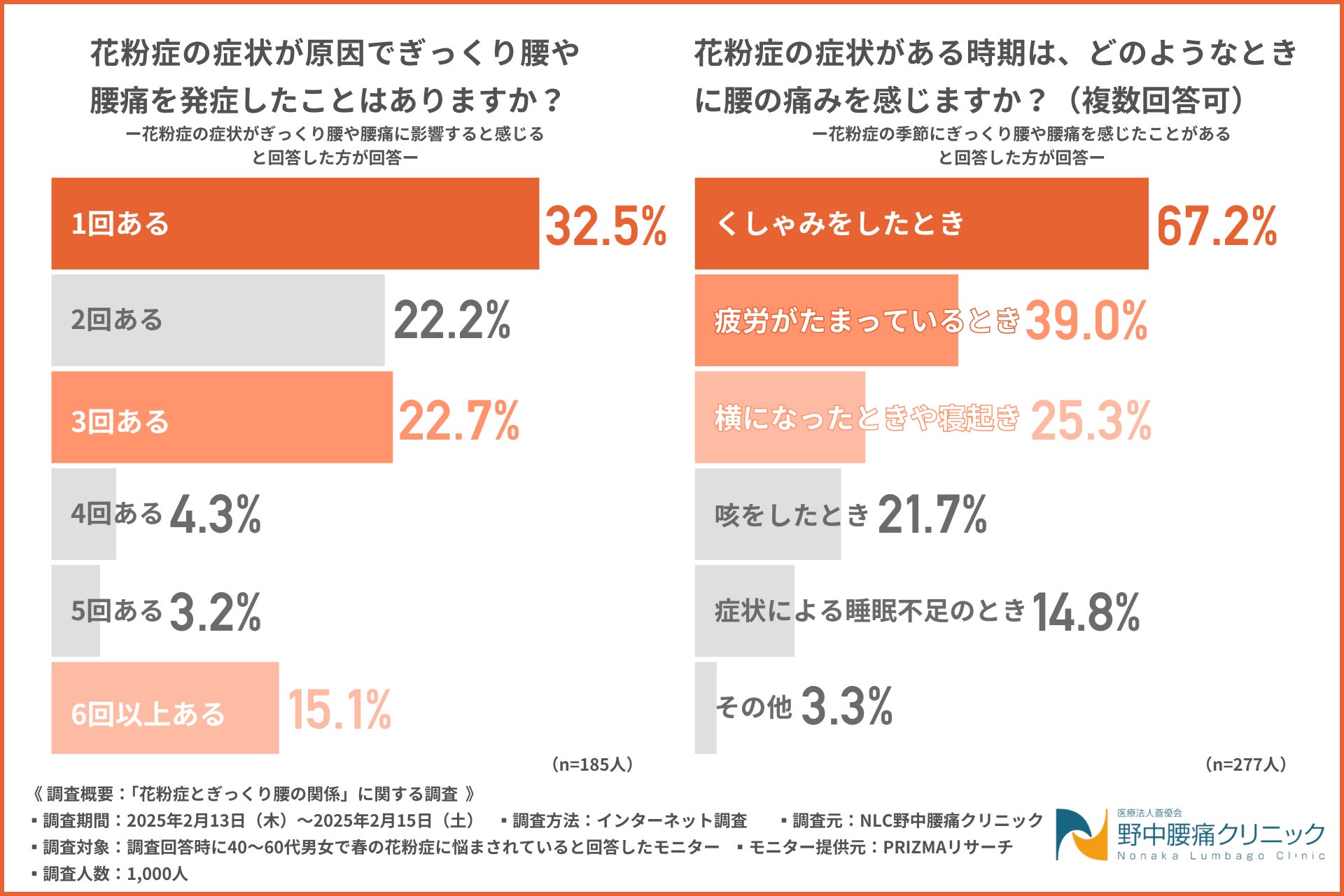 今回の調査で、春の花粉症の症状とぎっくり腰や腰痛の関係が明らかになりました。