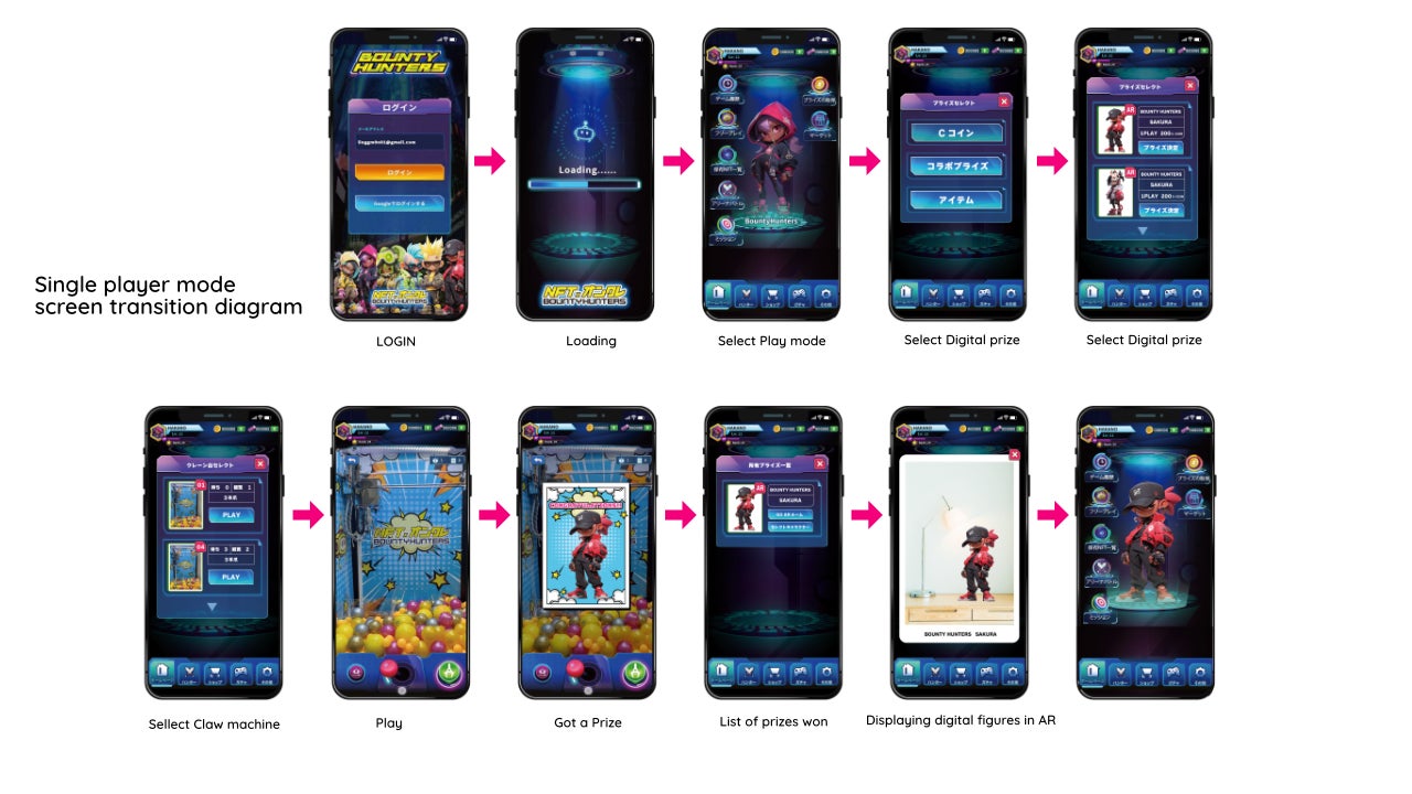 バウンティハンターズは、このモバイルゲームとクレーンゲームという2つの大きな成長市場が交差する場所にあり、クレーンゲームの持つエキサイティングなユーザー体験と、トークンでのインセンティブ設計が可能なブロックチェーンゲームを融合させることで、トークンでの報酬を受取れたり、様々なデジタル化された景品が獲得できるという世界初のゲームを、ブロックチェーンゲーム未体験のゲーマーへ届けます!