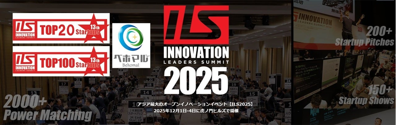 株式会社ベホマル(本社:滋賀県草津市、代表取締役社長:西原麻友子)は、 アジア最大級のオープンイノベーションイベント「Innovation Leaders Summit 2025(ILS2025)」 において、大手企業から多くの興味関心を集め、商談リクエストが特に多いスタートアップとして、参加する757社のスタートアップ中の「ILS TOP20 STARTUPS」としてTOP20社(上位2.6%)の企業に選出されたことをお知らせいたします。