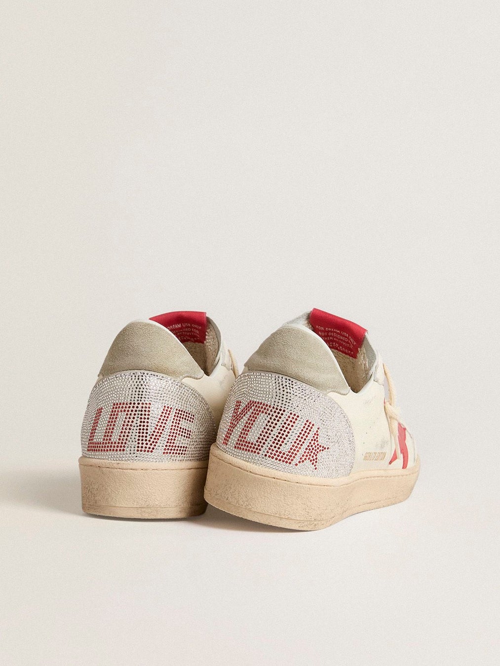 このスペシャルな日に向けて、新たな視点で再解釈された Ball Star(ボールスター)スニーカー が登場。「GGDB」ロゴとハートが描かれた赤いタブが特徴の限定版ジェンダーレススタイルは、ホワイトのナッパレザーに赤いレザースターをあしらったニューデザイン。バック部分には小さなシルバークリスタルと「love you」のメッセージが赤いクリスタルで飾られています。
