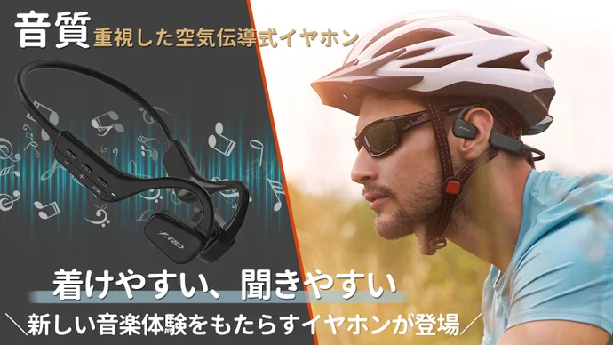 車が近づいても気づかない等の危険が少なく、長時間使用しても耳の閉塞感による違和感がなく快適に利用できる、最近話題のオープンイヤー式の空気伝導型イヤホンです。