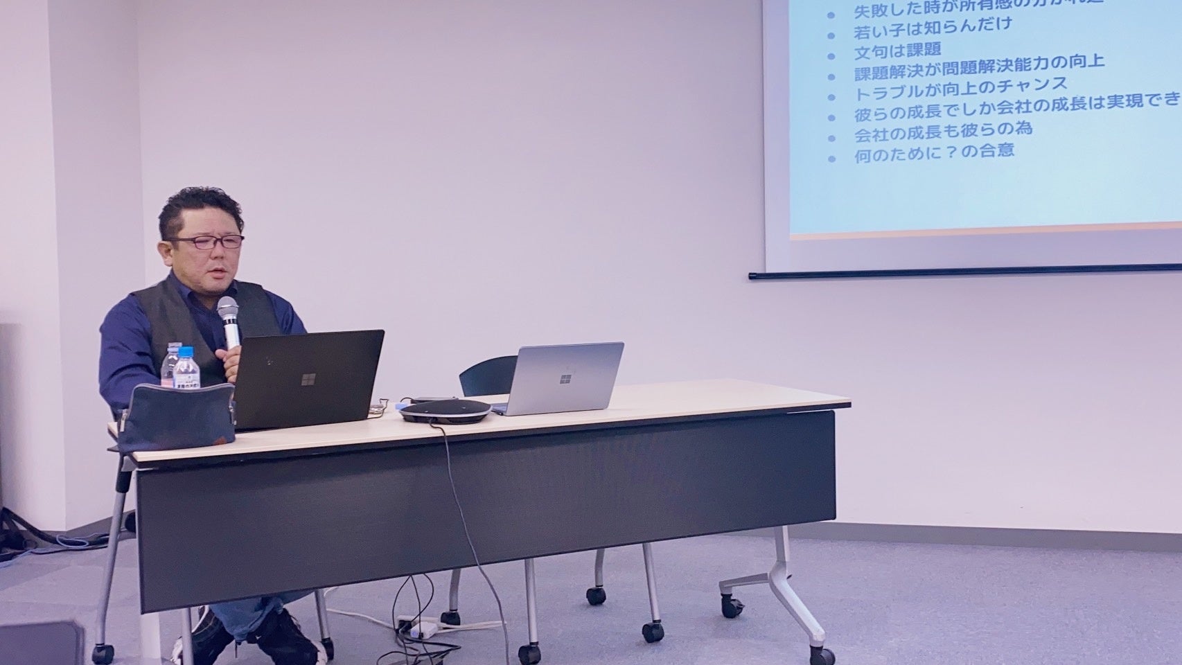 第1部では、田尻社長が社員の〝働きがい〟の向上を大事にしている経緯を振り返ったほか、全社を挙げて取り組み続けているという、若手の人材が仕事を覚える過程でモチベーションも育つ仕組み作りの過程やマニュアルづくりを解説。誰にどういった仕事をなぜ任せるか、どういった事柄をなぜ管理するのかに至るまで、ITツールの活用方法などを交えながら、熱く語りました。