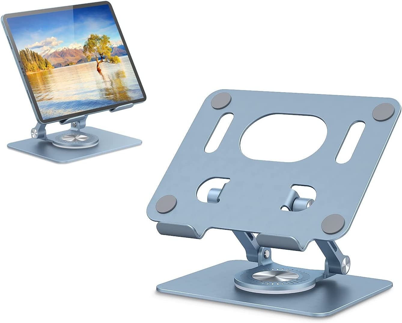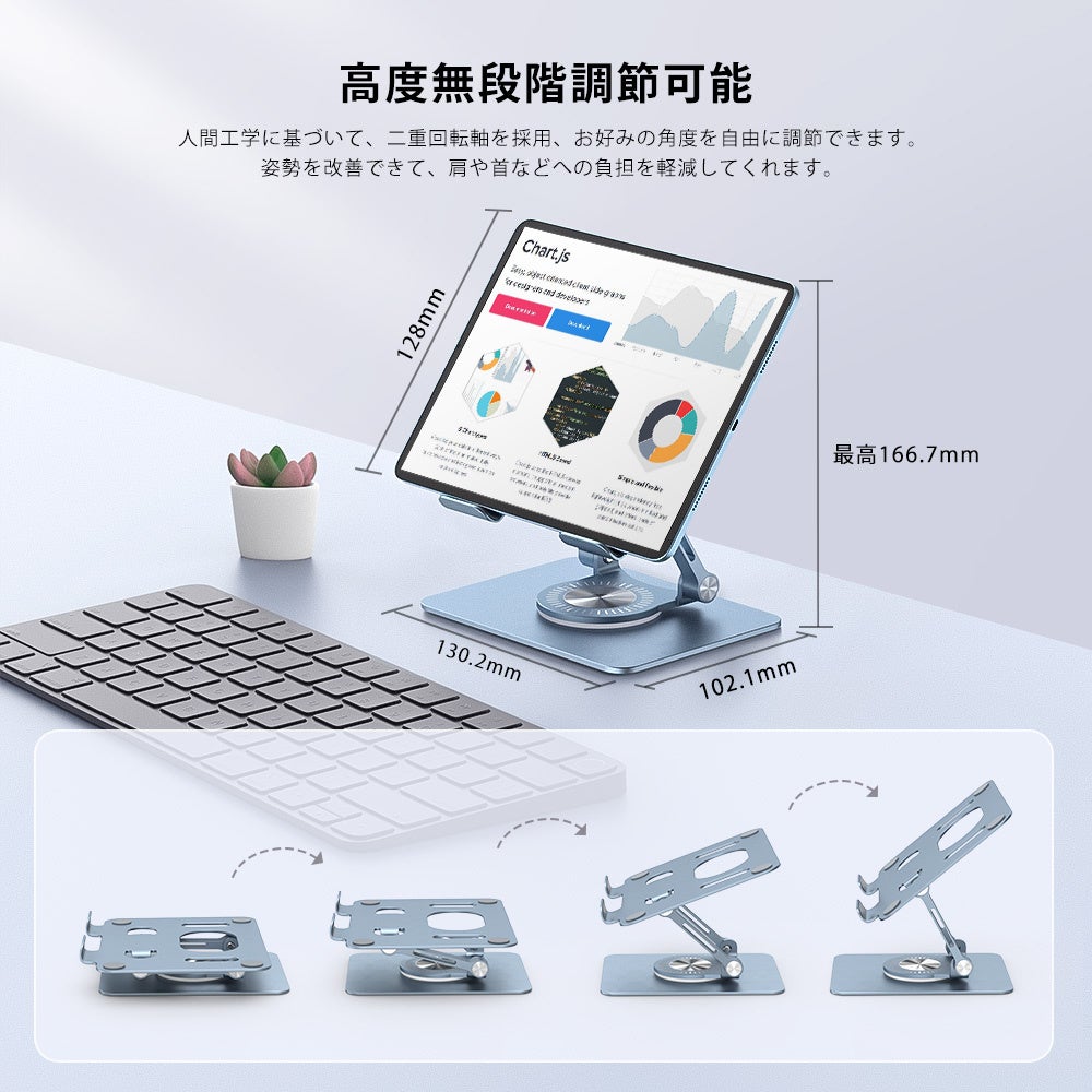 TOPESELタブレットスタンド 360度回転 iPad用スタンド折畳み式 ノートパソコンスタンド高さ角度調整可能 Tabletスタンド 縦置き 横置きタブレットホルダー 収納便利 タブレットPCスタンド 画面共有便利 姿勢改善 滑り止め 4.7~12.9インチまでiPad&タブレット&電子書籍リーダーなど機種兼用 アルミ材質(青灰色)