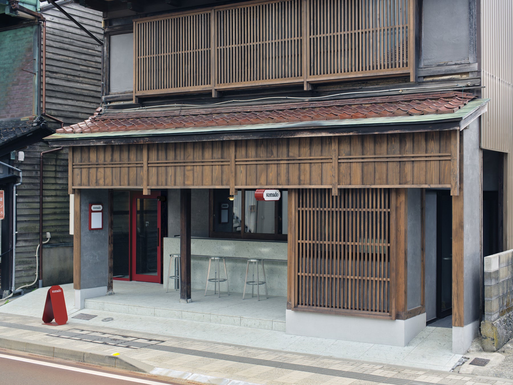 北陸新幹線の延伸で注目が集まる石川県・小松市。九谷焼や加賀棒茶に象徴されるように、この町には工芸やものづくりの美意識が日常に根づいています。町家もまた、長く暮らしを支えてきた小松の日常の資源のひとつですが、近年は老朽化や後継者不足などによってその姿が失われつつあります。そんな中、その日常を未来へ受け渡すかたちとして、分散型ホテルブランド「Komado」は生まれました。第一号店「Komado ベンガラ」は、町家を改修した3室の客室に加え、カフェやショップも併設。ゲストが空間や工芸を通して町家の暮らしに触れながら滞在できる場所となっています。