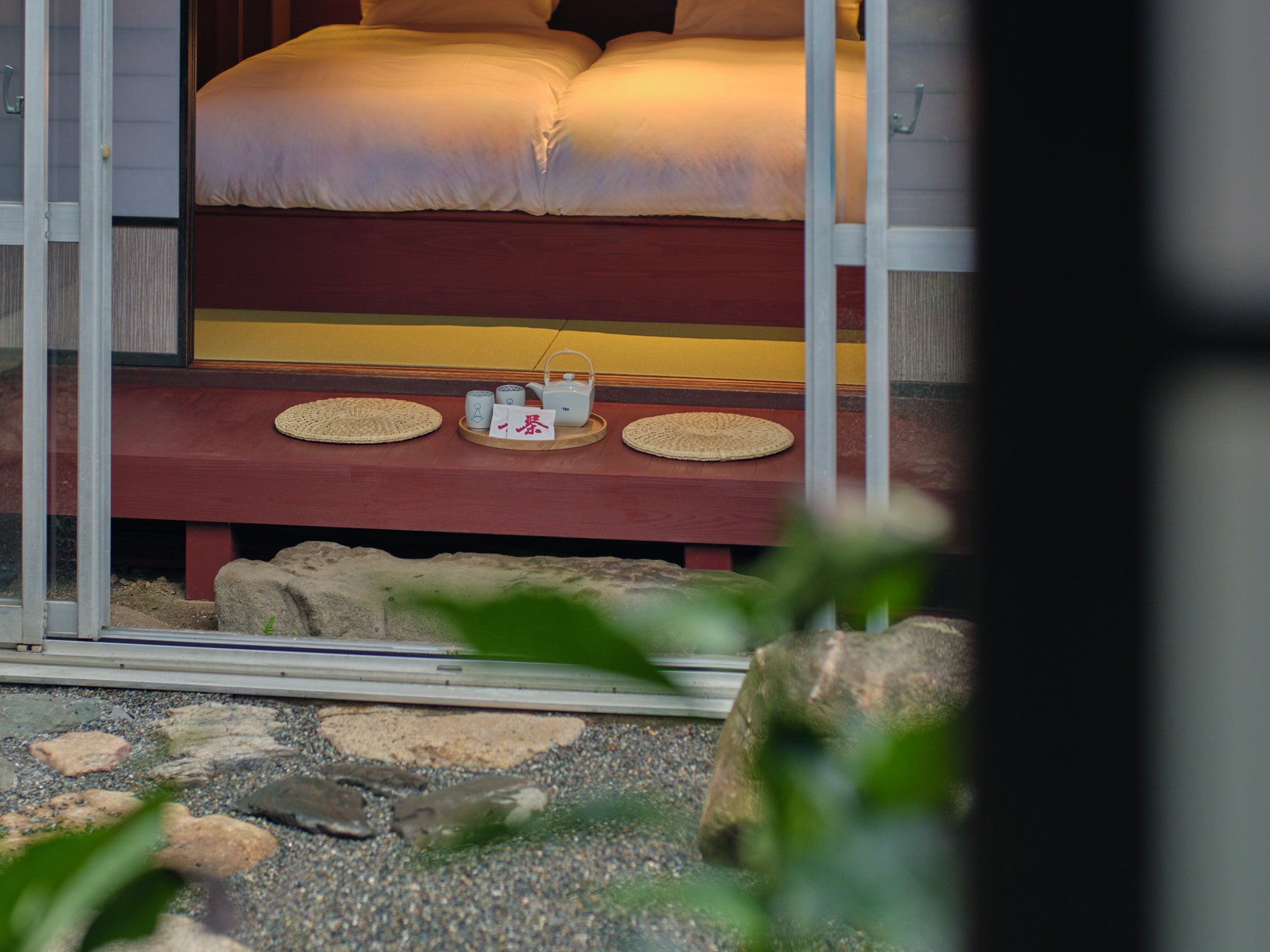 客室や共用部には、地域に息づく生活工芸や、小松にゆかりある作家のアートを随所に設えています。上出長右衛門窯の茶器や、最高品質の小松イ草で織られた小松畳の他、小松出身のアーティスト・小雪によるアートワーク、鬼瓦職人・鬼笑が手がけたアートオブジェなど、この町に受け継がれた美意識と現代の技術が響き合う品々が、滞在を彩り、暮らしに根づく文化を体感させてくれます。