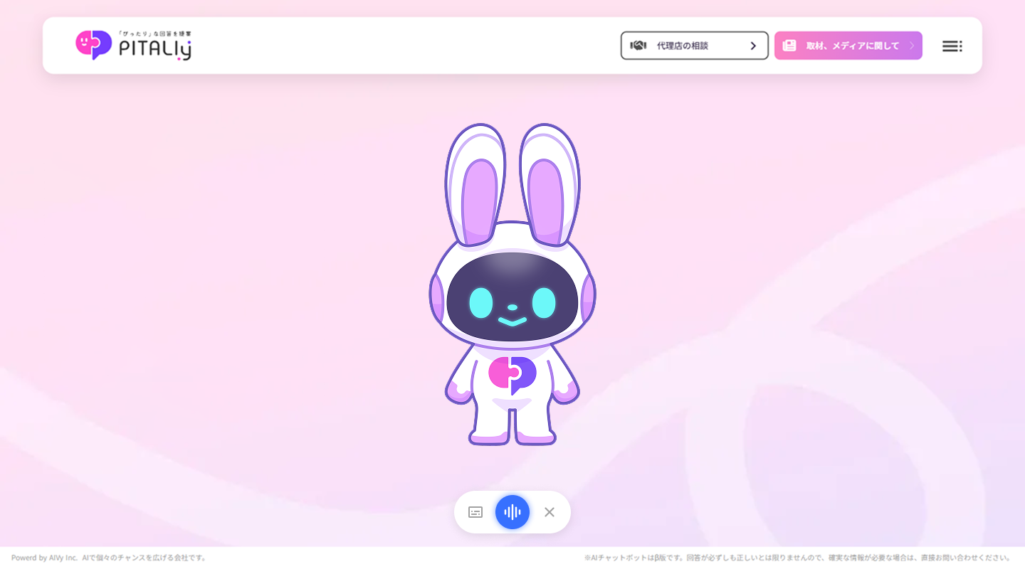 アバター付きAIチャット『ピタリー』がFAQ自動生成機能とボイスモードを提供開始