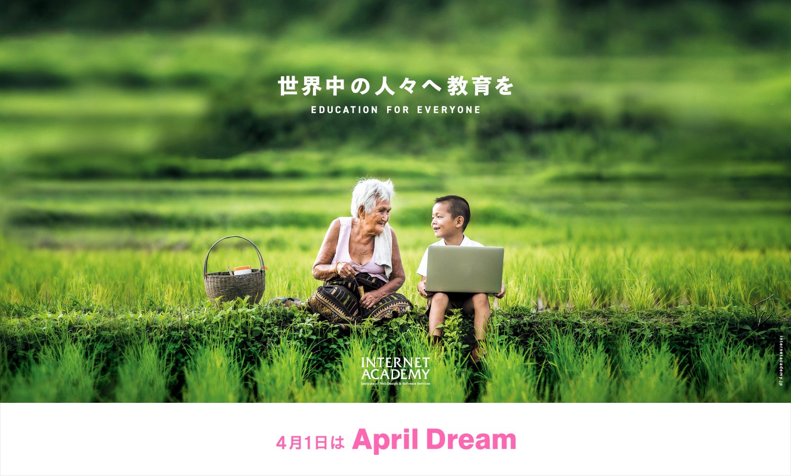 当社は、4月1日を夢を発信する日にしようとするApril Dreamに賛同しています。このプレスリリースは「インターネット・アカデミー」の夢です。