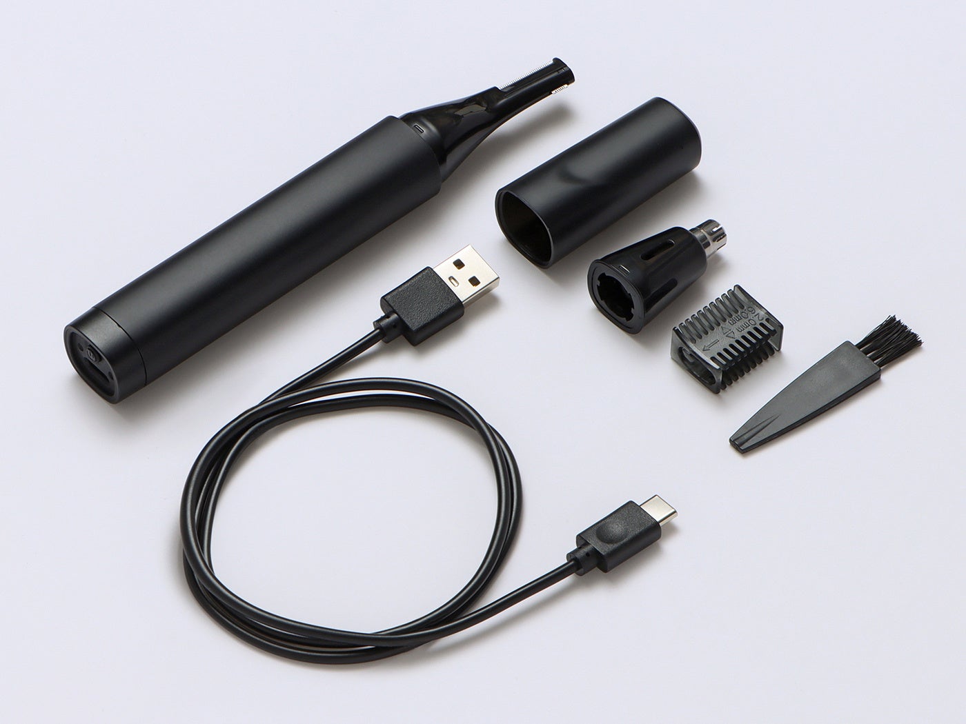 付属品:キャップ、USBケーブル(Type-A–Type-C)、顔/マユ用アタッチメント、鼻/耳用アタッチメント、マユコーム 2.6mm、掃除用ブラシ