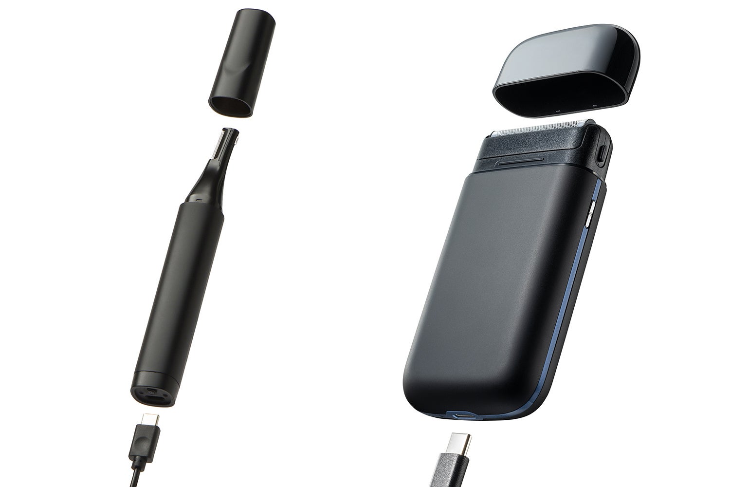 持ち運びに便利なコードレスで使える 「USB Type-C」 充電に対応したフェイストリマーとモバイルシェーバーを同時に販売。