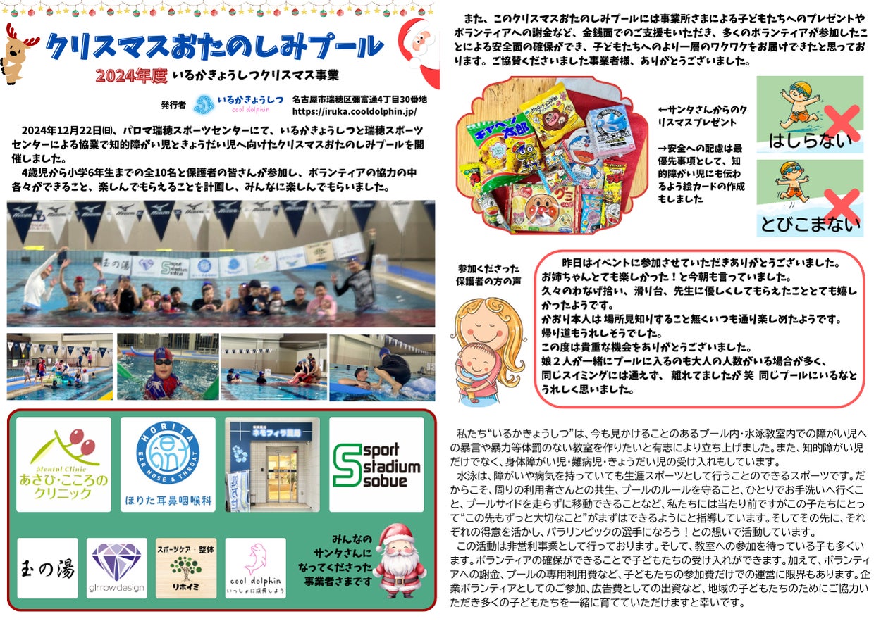 このイベントには地元の事業者やボランティアも協力し、子どもたちへ水泳経験というクリスマスプレゼントがプレゼントされた。