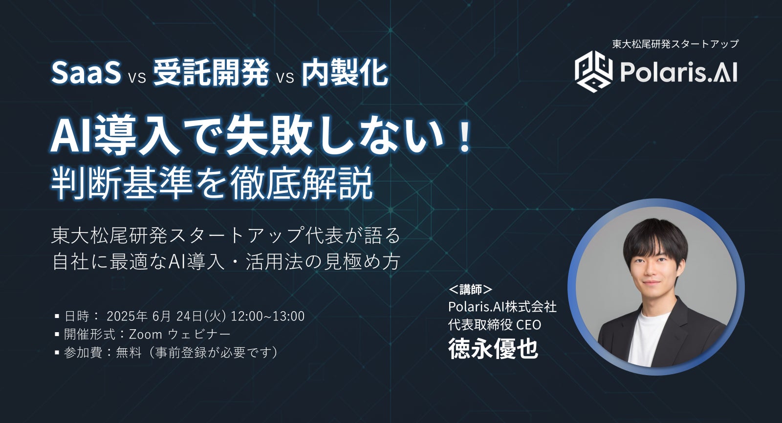 東大松尾研発スタートアップPolaris.AI、『SaaS vs 受託開発 vs 内製化」AI導入で失敗しない判断基準を徹底解説』をテーマにセミナーを開催!