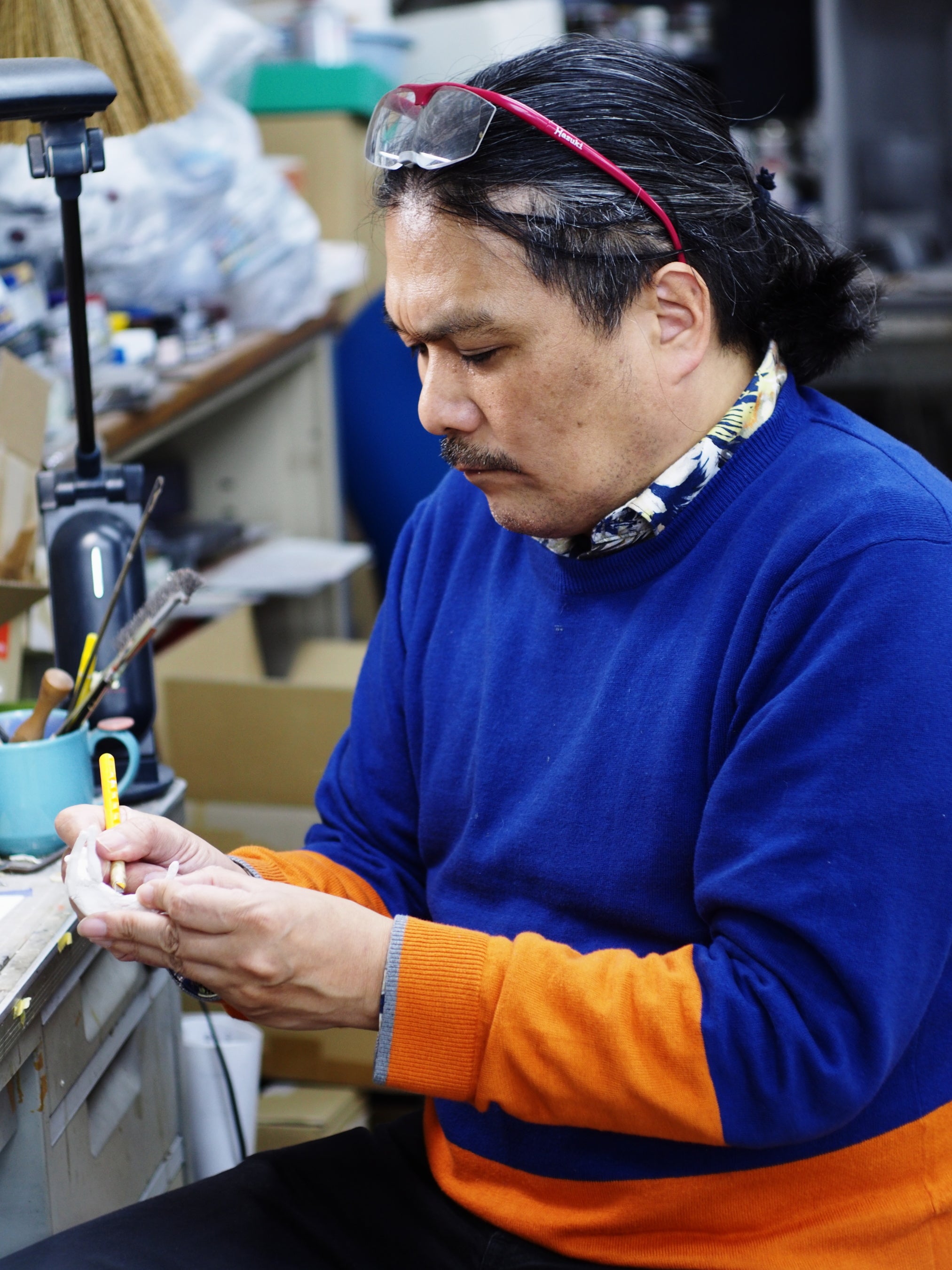 1962年山口県生まれ。哺乳類・爬虫類・虫類・魚類や恐竜など、あらゆるいきものへの深い造詣を持つ生物造形とイラストの第一人者。’99年に発売されたチョコエッグ「日本の動物コレクション」にて、その名を日本中に知らしめた天才造形家である。その実力はニューヨーク自然史博物館に恐竜復元モデルを提供するほど。膨大な知見に裏付けされた生態や特徴を踏まえたリアリスティックかつ生命力溢れるフィギュアは、国内外で高い評価を得ている。数多の生物フィギュアとともに、その造形力を活かしたオリジナルのドラゴンや、生物的表現を巧みに融合させた独自アレンジの「エヴァンゲリオン初号機」なども代表作。令和6年「文化庁長官表彰」を受彰。