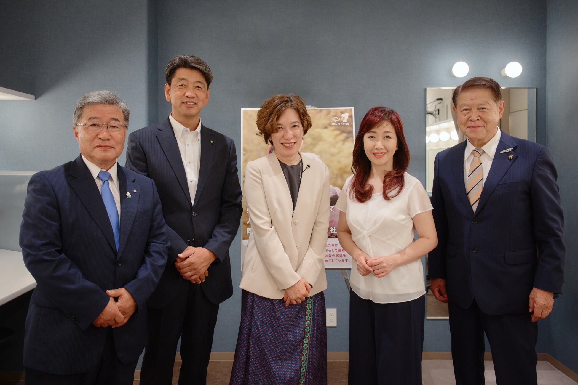 (写真左から)大井町長 小田眞一氏、小田原市長 加藤憲一氏、神奈川県議会議員 佐々木ナオミ氏、伍代夏子氏、南足柄市長 加藤修平氏
