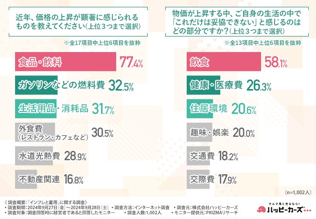 これまでの調査で、経営者が特に物価の上昇を感じているものや、生活の中で妥協できない部分が判明しました。