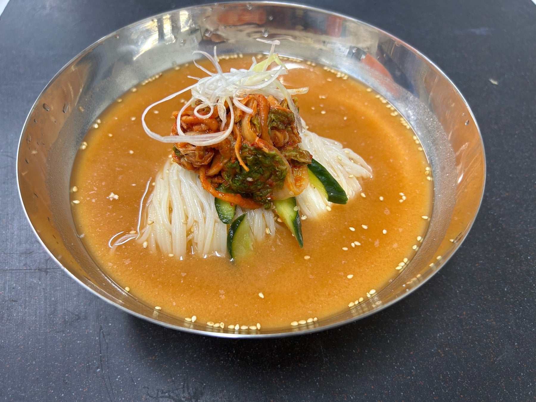 1959年創業の本場韓国のレシピで和牛を提供する焼肉店です。韓国の冷たいスープ「ネング」をイメージした植物由来食材のみの味噌冷麺を提供しております。