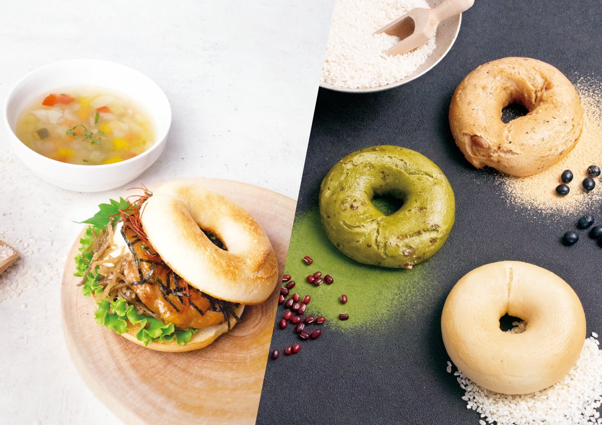 日本最大の店舗数を誇る、“しっとり&もちもち”のソフトな食感のベーグルを提供する国内No.1のベーグル専門店「BAGEL & BAGEL」にて、米粉を練り込んだ、もちもち食感の和ベーグルを提供します。噛めば噛むほど米粉の甘味が感じられて、炊き立てのお米のような香りがポイントです。