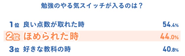 子どもたちの勉強やる気スイッチが入る「自分の好きな教科」から始めたり、学習習慣が続いていることをきちんと「ほめて」あげることも有効です。