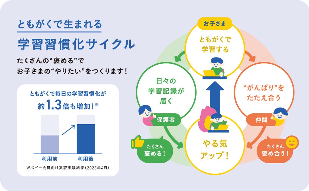 いつもの仲間と”ともに学ぶ”ことでお子さまのやる気を引き出し、毎日の学習習慣化を実現します。