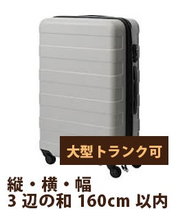 縦・横・幅3辺の和が160cm以内であれば、どんな大きさの旅行カバンやトランクでも1個550円でお預かり致します。