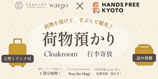 京都きものレンタル wargoでは従来から大型バックに入る貴重品以外の手荷物は無料で預かっており、手ぶらで観光をお楽しみいただける点が好評頂いておりました。
