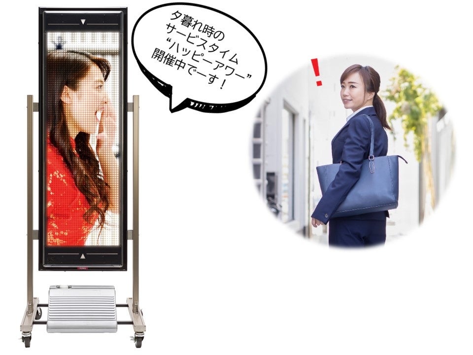近年深刻化する人手不足問題において、「スーパーエコリアyay!(イェイ!)」は、店舗スタッフに代わり、周辺の住人や就労者、通行人に対して、店舗の存在や魅力を効果的にアピールすることができます。「いらっしゃいませ」などの呼び込み行為は、「客引き行為等迷惑行為防止条例」に抵触することなく、店舗の魅力を訴求できます。