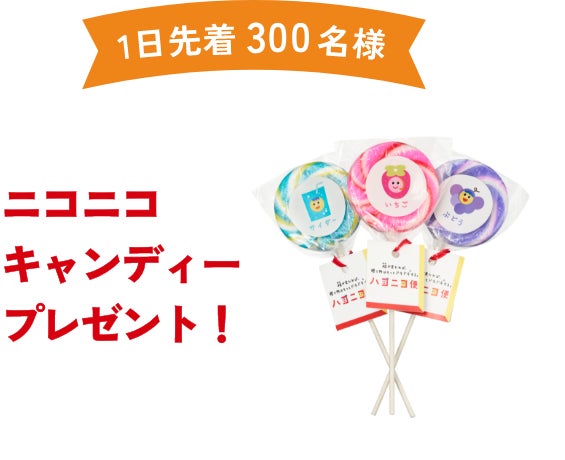 会場で写真または感想を添えて 「#ハコニコ便」 をつけて投稿していただいた方に、イベントオリジナルデザインのキャンディを1日先着300名様にプレゼント!