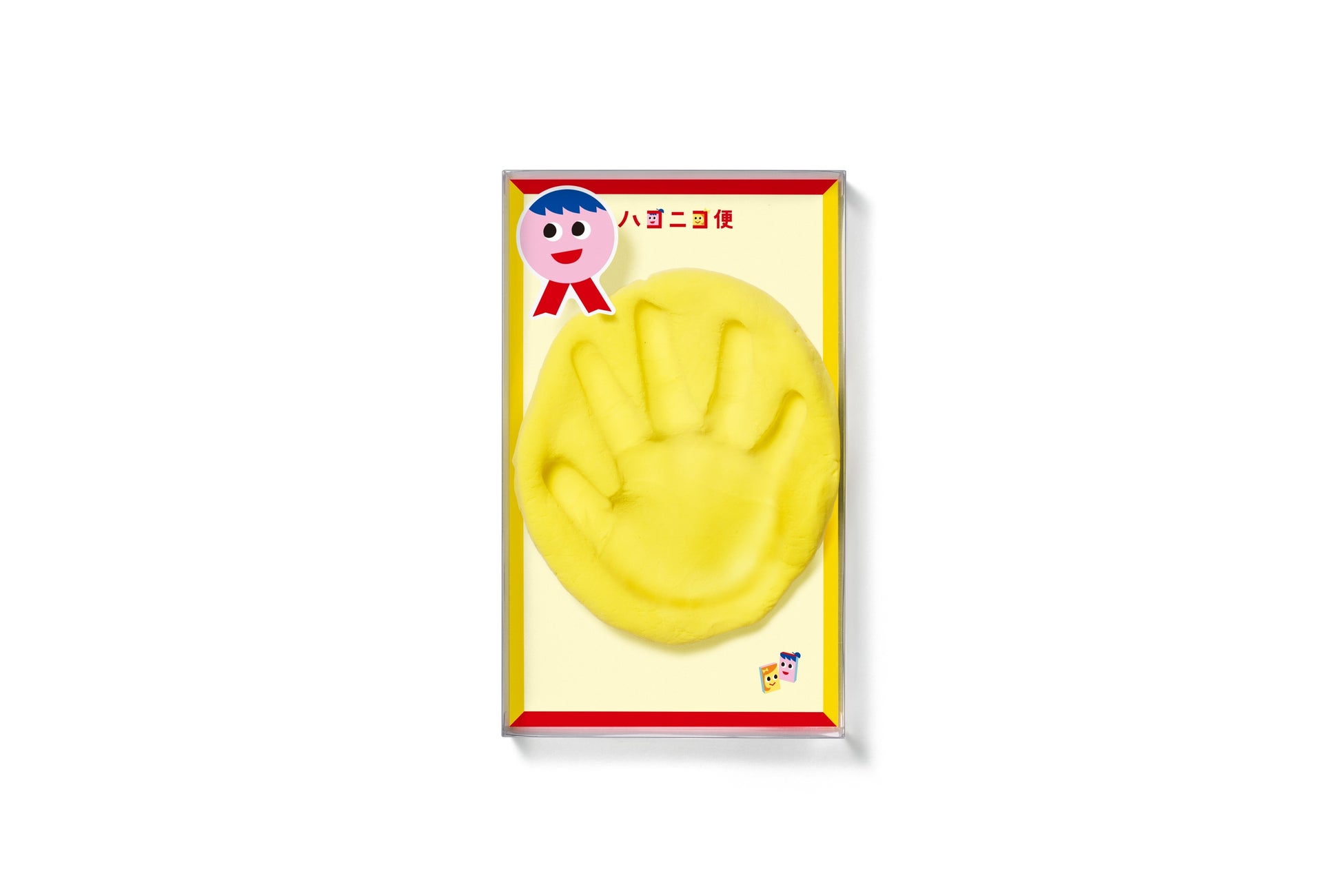 粘土でお子さまの手形をとり、ハコニコ便で送付できます。おじいちゃんおばあちゃんは孫の成長を形として残すことができます。