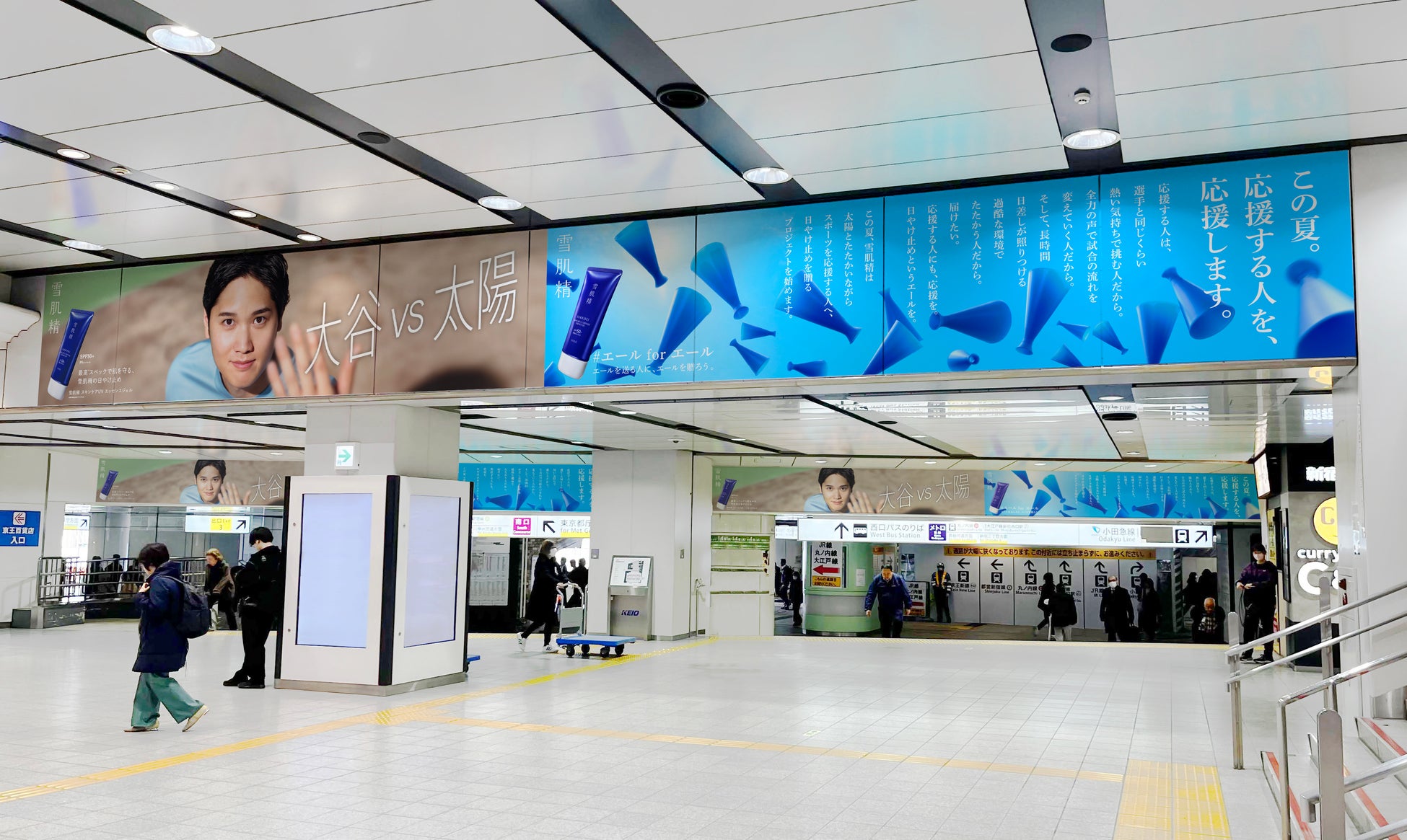 今回お披露目となる交通広告は、全力で応援する人たちが多く行き交う場所として、東京都・京王線新宿駅と岩手県・花巻駅のほか計8か所に登場。大谷選手の「大谷vs太陽」ビジュアルとともに、『雪肌精』のメッセージ「この夏。応援する人を、応援します。」が掲げられ、スポーツを楽しみ、全力で応援する人たちにエールを贈ります。