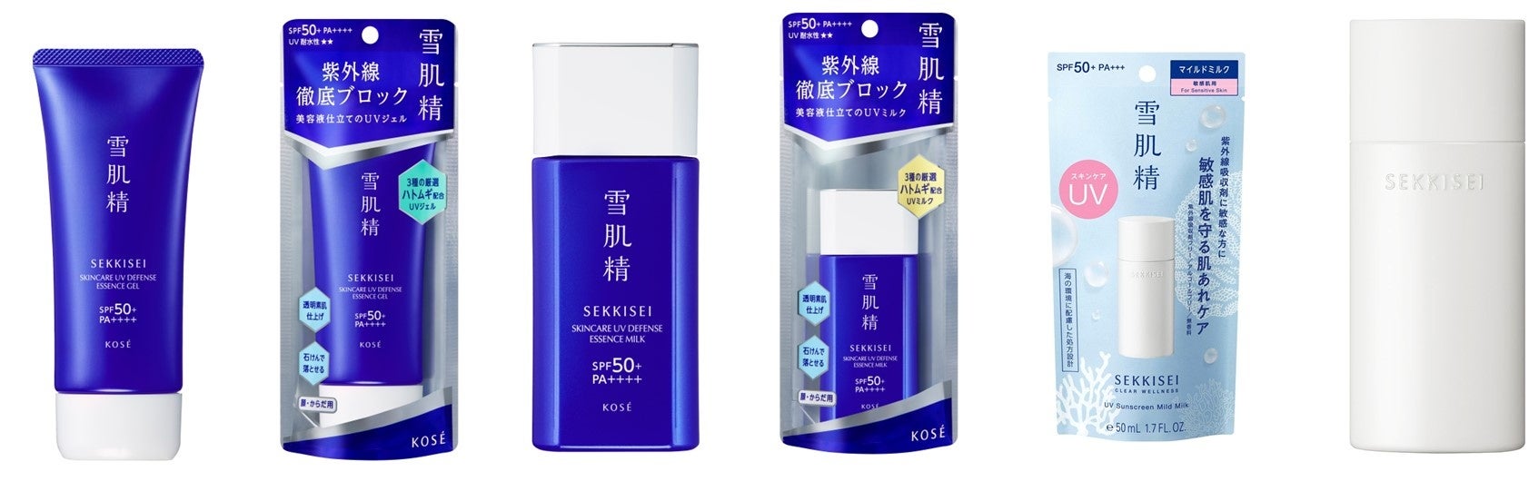 今年の2月に発売した「雪肌精 スキンケア UV エッセンス」は、国内最高基準値であるSPF50+/PA++++(UV耐水性★★)の高い紫外線防止効果と、日やけ止めを塗ることを全く負担に感じない、雪溶けタッチでみずみずしく肌に馴染む快適な使い心地を両立した美容液仕立ての日やけ止めです。3種のハトムギエキス(国産ハトムギエキス※1・ハトムギ発酵エキス※2・ハトムギ水※3)をはじめとした、和漢植物成分が肌にうるおいを与えて、透明感のある美しい素肌にみちびきます。汗、水、こすれに強いスーパーウォータープルーフでありながら、洗顔料、ボディソープで落とすことができます。また、サンゴの成育に影響がないことを確かめた海の環境に配慮した処方設計を採用しています。好みの感触や使用シーンに合わせて選べる「ジェル」と「ミルク」の2タイプをラインナップしています。