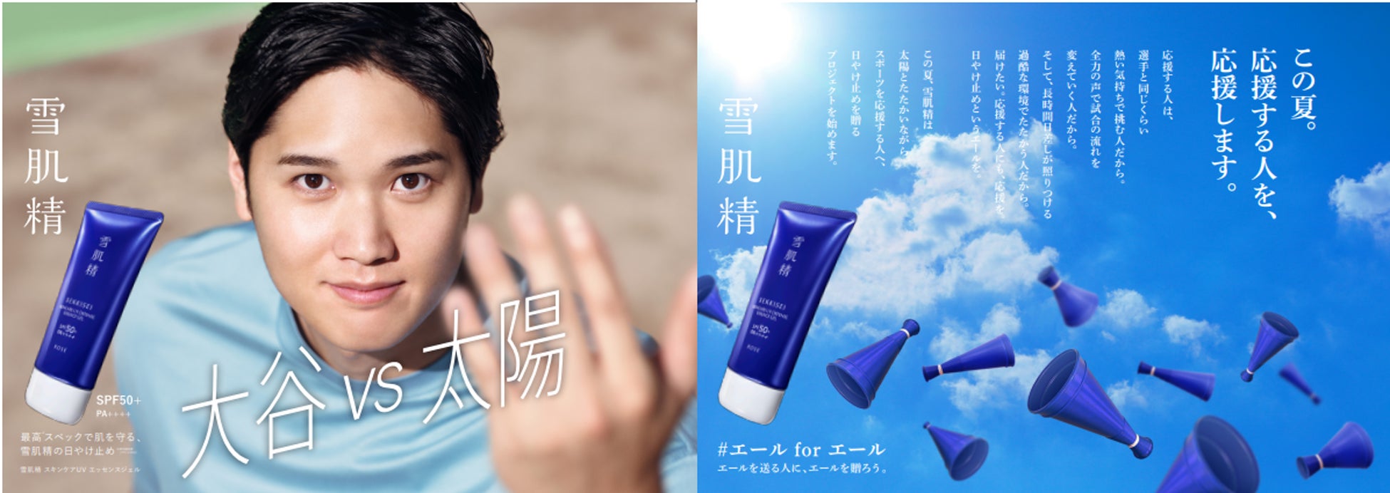 近年は紫外線対策が運動パフォーマンスの向上に繋がることも広く知られるようになり、年齢や性別を問わず紫外線対策をする人が増えています。そこで、『雪肌精』は「未来の肌を守るため、日やけ止めを使う習慣をあらゆる世代に広めたい」という想いのもと、世界を舞台に活躍し、性別や年齢を問わず多くの人々に愛されている大谷選手に、「大谷vs太陽」の広告へ出演いただいています。