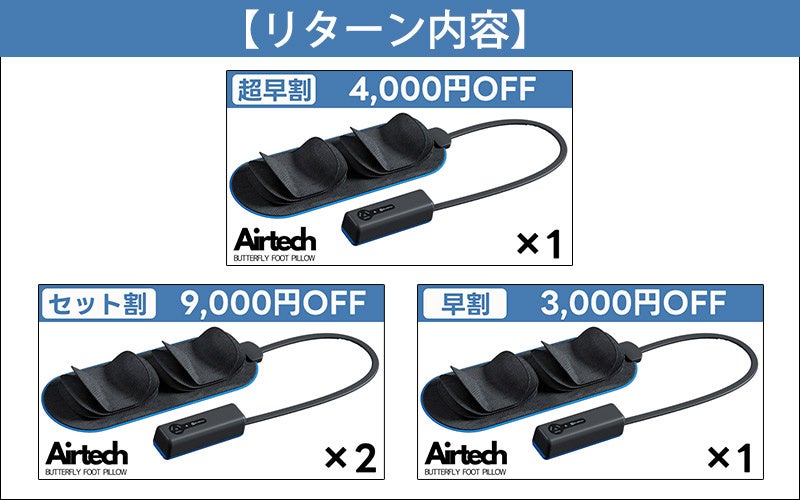 エアバック搭載の次世代寝具「エアテックシリーズ」の新商品「動く足枕-バタフライフットピロー」がMAKUAKEに登場。