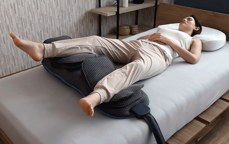 内臓されたエアバックが膨張と収縮を繰り返す動きで足を心地よくストレッチしながら、眠りを誘うリズムを刻みます。