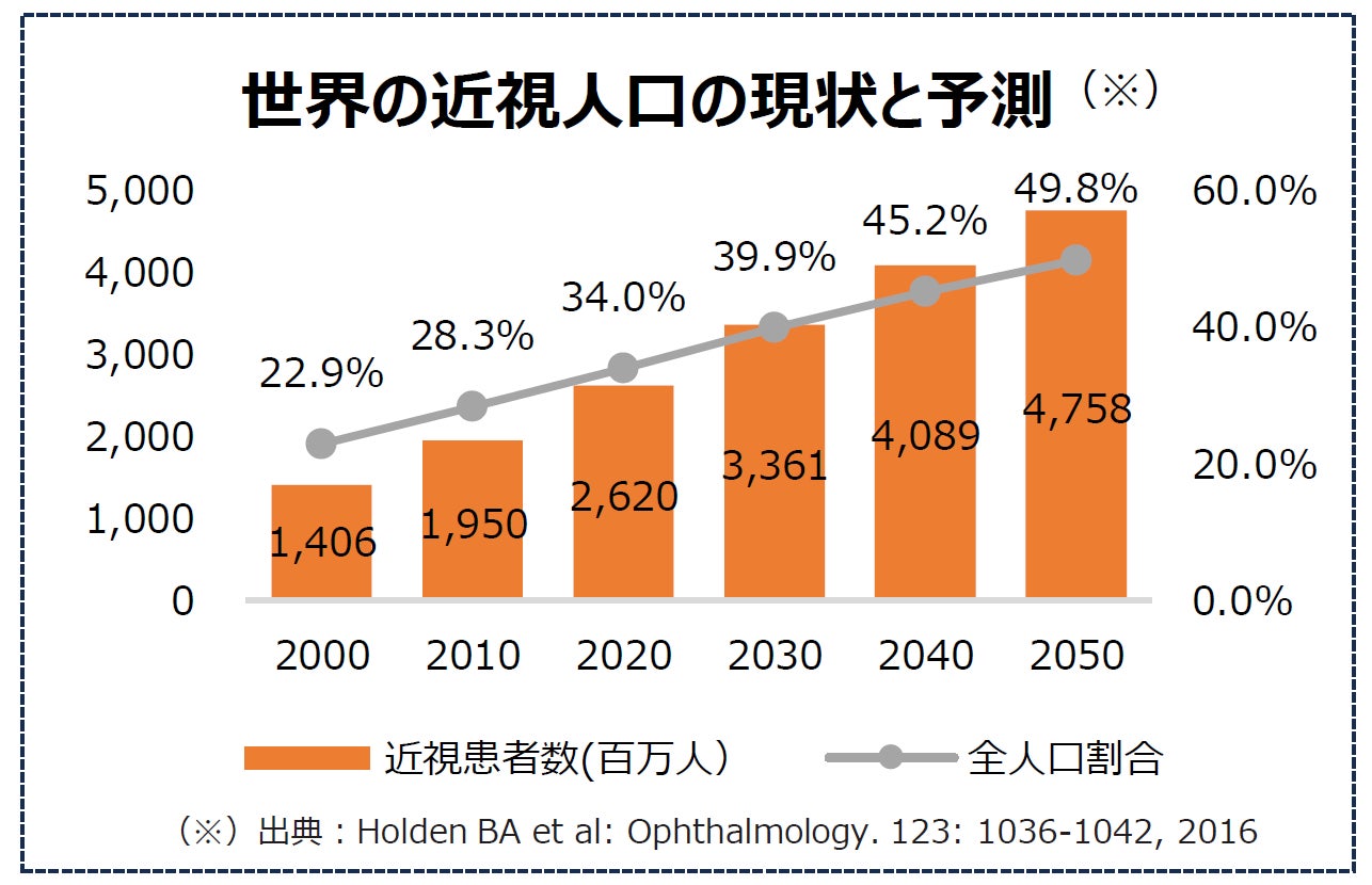 世界の近視患者の割合は年々増加しており、2050年には人口の半分が近視になるとも言われています。